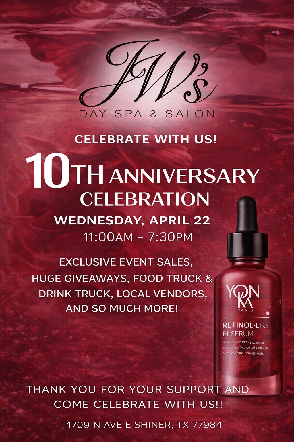 The first of its kind in Shiner, Texas. JW’s Day Spa & Salon invites you to relax, unwind, and escape. JW’s offers a unique combination of traditional spa/salon services and medical skin rejuvenation treatments designed to help you look and feel your very best.